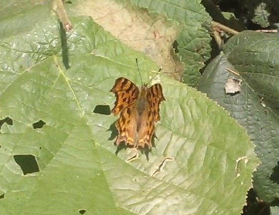 Past the disused lock, the path runs right alongside the canal. Today I stopped to watch hundreds of tiny, iridescent blue dragonflies skimming over the surface of the oozy-green weed. No more than three centimetres long, they skip and dance just millimetres above the surface – almost impossible to photograph with a phone. But it was good to catch sight of a couple of butterflies basking in the warm sun.